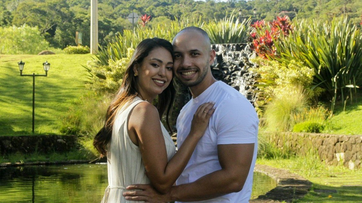Em maio de 2025 ficamos noivos, no Chile, brindando com vinho enquanto assistíamos ao pôr do sol, porque o Caio sabe exatamente como emocionar a Laís. E agora estamos aqui, prontos para dar o próximo passo: nos casar, nos tornar um diante de Deus e construir, juntos, a nossa família.
